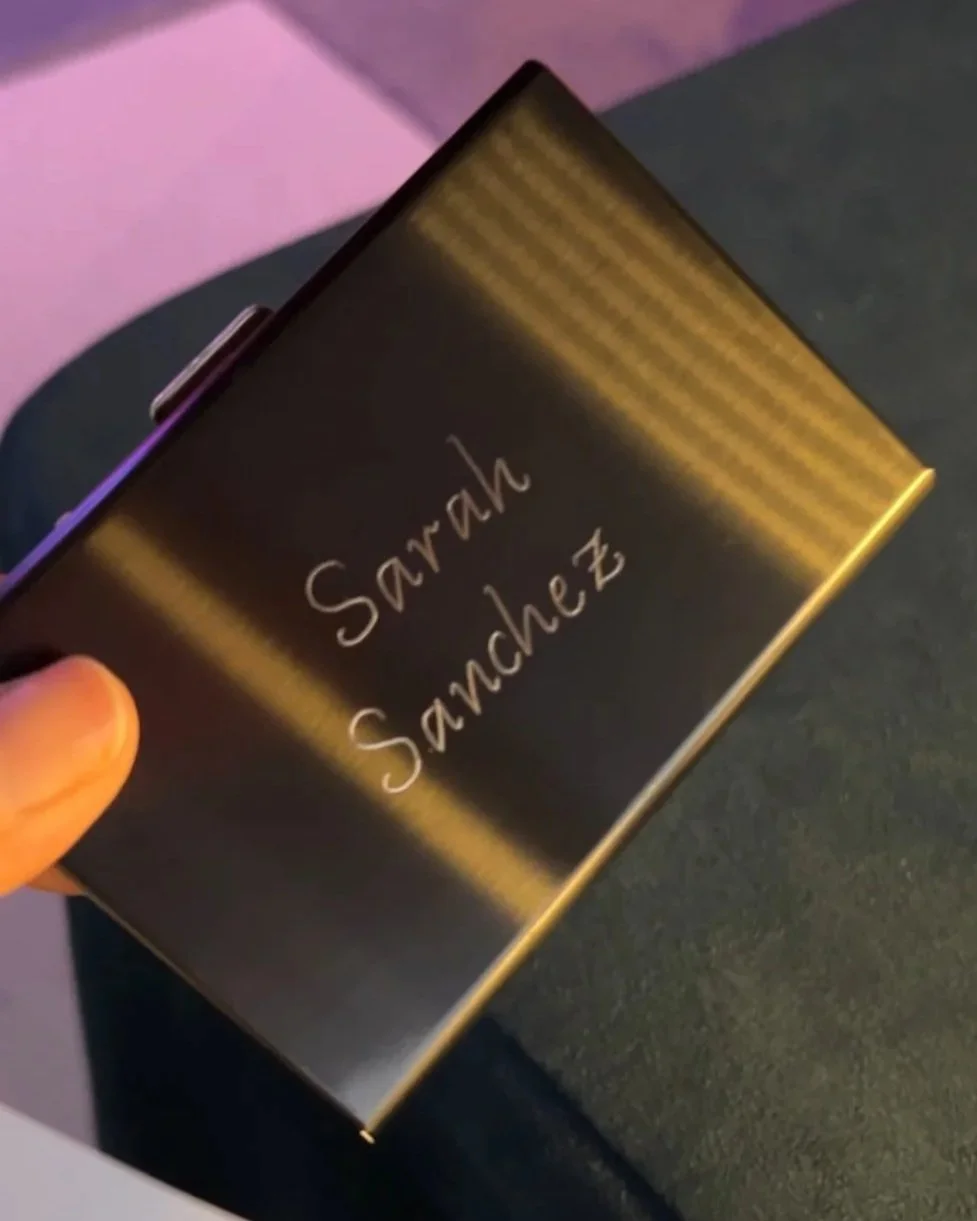 Personalized sleek business card holders are a confirmed party hit!