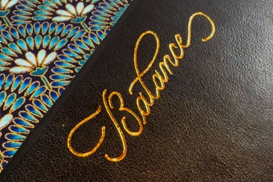 Custom foiling involves our signature script written onto gold and then transferred with a heat tool onto a leather surface. It’s a bespoke method that results in a hand-lettered metallic finish with zero drying time.